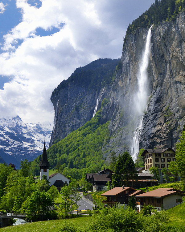 O famoso vilarejo Suiço que tem cachoeiras que nascem entre as rochas, um vilarejo de tirar o fôlego e que se tornou a meca do voo livre